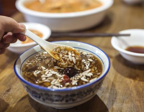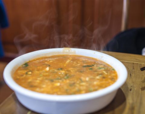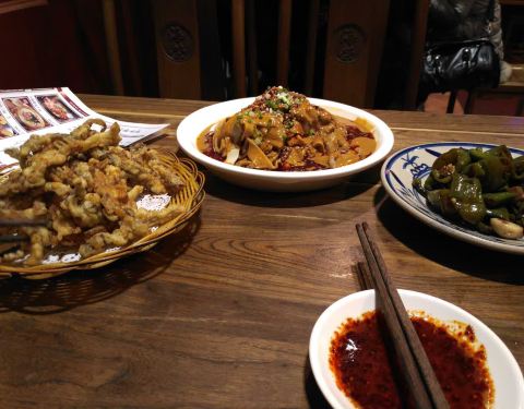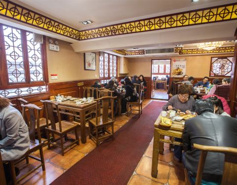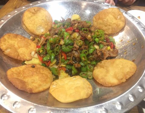 老字号海荣锅贴馆,装修风格很古老,在西安非常有人气。锅贴味道很正,皮薄馅大,外皮酥脆,底部微焦,一口下去,鲜美的汤汁四溢,爱不绝口,每一口都充满了老西安人记忆里的味道。此外,典型的老陕西风味疙瘩汤,炸得酥脆里嫩的椒盐蘑菇,还有集齐杏仁、花生、葡萄干等八宝的八宝菠菜味道也非常棒。