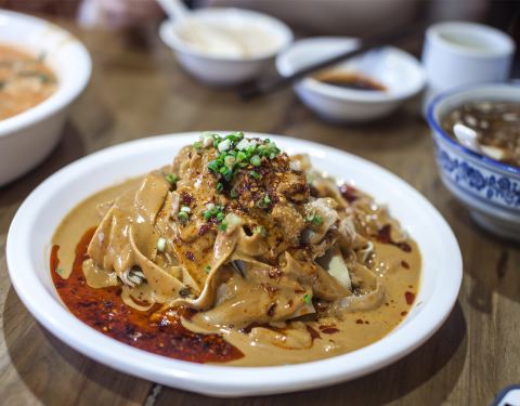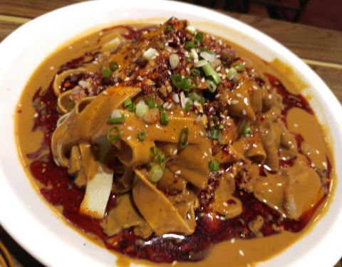 - 推荐这里的韭菜牛肉锅贴,很好吃,第一次吃锅贴,感觉外面炸的很香酥脆,里面的肉也很棒,口感非常好的锅贴