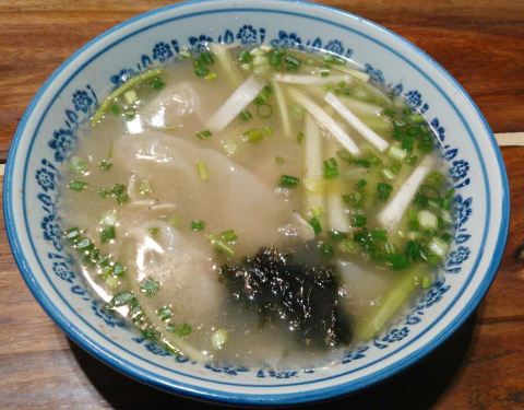 荠菜锅贴饺子,季节特有的,看起来很诱人,荠菜很香,很家常的味道。 韭黄牛肉锅贴饺子,锅贴底部非常酥脆,端上来热气腾腾,很好吃。 养胃疙瘩汤,西红柿鸡蛋青菜,味道不一般,非常开胃。