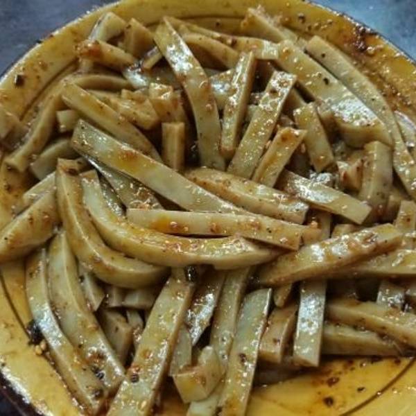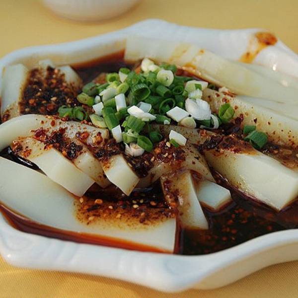 曹凉粉是一家老店,味道有保障,多年如一。凉粉用的是荞麦,呈暗灰白色。凉粉皮密实有嚼劲,配上辣椒酱、秘制豆豉酱、藤椒油等,一口吃下去,可以让你辣得欲罢不能,辣完后又有余甜,会在之后的日子里对它牵肠挂...