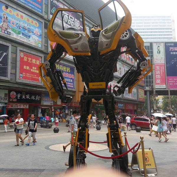 百年德化风情购物公园是郑州最繁华,具有历史性代表的购物广场,以前这里就是一条著名的德化步行街,现在已经建造成为一个三四层高的,时尚的购物广场。乘坐地铁到二七广场地铁站,从F出口出来,步行1分钟就到达了。也可以乘坐公交二七广场正兴街公交车站或者福寿街公交车站,再步行2分钟到达,交通十分便利。这座建筑物非常好找,而且建筑物上面都会大大的写着百年德化风情购物公园,无论你从那个主要出入口进入,都能看到变形金刚的雕塑,其实最多能看到的就是大黄蜂,这个变形金刚的造型相当逼真,栩栩如生,很多人都喜欢和他们拍照,特别是在上映变形金刚的时候。因为购物公园里面除了有不同品牌的服侍,还有一个电影城。而三楼还有一个美食广场。这是一个综合性很高的购物公园。