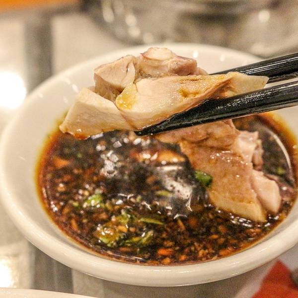 老彭记清补凉斜对面就有一家正宗老字号海南鸡饭点——隆仔鸡饭店。文昌鸡的特点是个体不大,重约1