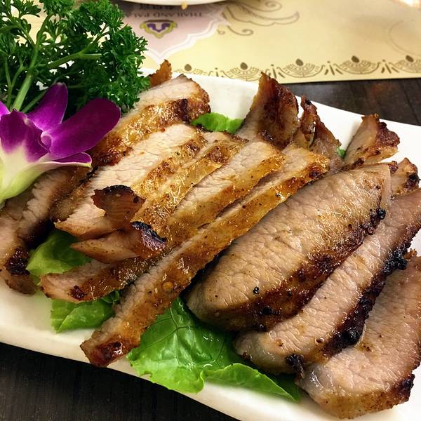疯狂地点了最爱的烧猪颈肉 泰式腌粉丝 泰式腌鸡爪 马拉盏炒通菜 牛肉碎饭 最后割爱了冬阴功 不...
