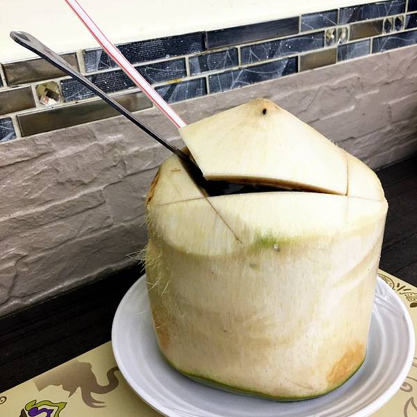 超火爆的泰国料理,排队也要吃!推荐的菜色是▶腌司庵、腌生虾、绿咖喱牛肉、炸通菜和椰汁鸡汤(冬阴功海鲜汤),价格平易近人又正宗。