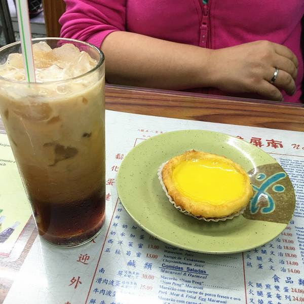 点了被称为全澳门最好吃的叉蛋治、红豆牛奶冰、凤梨冰、蛋挞。冰饮最先上来,红豆牛奶冰超级好喝,半杯的红豆,用料非常良心!味道还不错!