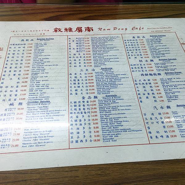 据说这是澳门第一家装了空调的茶餐厅,大概是一九五几年,店内服务员什么都是用了几十年的老伙计,这些比我们爸妈年纪还大的老人并没有因为年纪大被辞退,一直在店铺里做工,。。。
