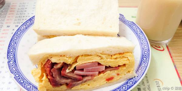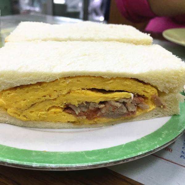 - 不能错过的南屏文治,炒蛋配多汁的叉烧和火腿,上下的面包是没有烤过的,炒蛋的热度温热了面包,口感很好