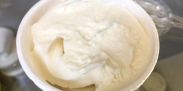刚开始路过的时候没注意,如果不看招牌,洪馨椰子的店铺实在是不起眼,就算看了招牌,也不知道是干嘛的。好奇,查了下,原来是卖冰淇淋的。 挑了个椰子味的,小贵,不过味道很好,清清凉凉的甜,不会觉得腻。盒子很有意思,泡沫塑料的,隔温得很。