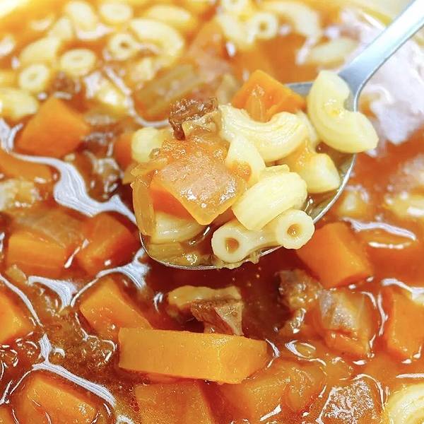 新鲜的番茄熬煮的牛尾汤,香气浓郁喝起来却清爽可口,番茄的微微酸甜让汤头喝起来更有滋味,通粉就比较普通