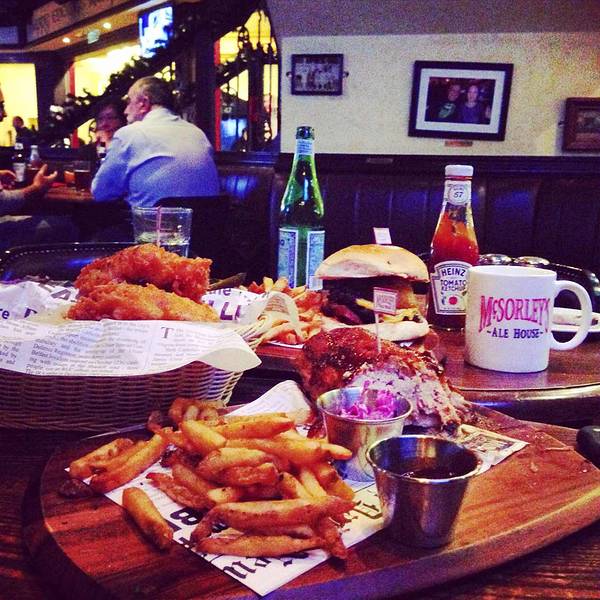 味道超级棒的一家美式快餐店!如果你很喜欢吃汉堡、薯条,然而对于Hard Rock Café、麦当劳等都已经吃得厌倦了,可以考虑一下Mcsorley's Ale House。它是一家位于威尼斯人度假村一楼的餐厅,所以可以乘坐威尼斯人的免费穿梭巴士到达。餐厅的装修风格真的很美式,所以吸引了很多外国人,餐厅里面50%以上的都是外国人。当我们看菜单的时候,觉得那个菜式应该会挺小的,但是当上菜的时候真的吓我一跳了,一个女生真心很难吃得完一个餐噢,建议两个女生分享着来吃。而这里最让我印象深刻的就是它的食物都是用一些英文报纸来盛着的,给我感觉非常新鲜。这里的服务很好,但是服务员都是外国人,所以如果英语不好的客人,最好提前在手机安装翻译软件噢。不过让我推荐这家餐厅的原因是,这里的薯条真的好好吃,味道很适中,一眨眼就吃完了!汉堡包也挺不错的,但是相对还是觉得薯条最好吃了!