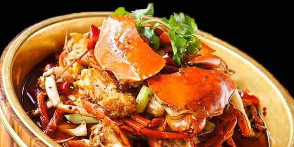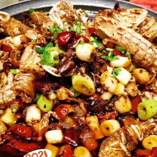 这是西安路上远近闻名的餐厅,招牌菜香辣蟹与爬爬虾都是标注四根红辣椒的麻辣菜品,相比另外不辣的做法,麻辣口味的口感更好,爬爬虾用热油炸地酥脆,加花椒辣椒大葱等佐料,用竹笼上桌。