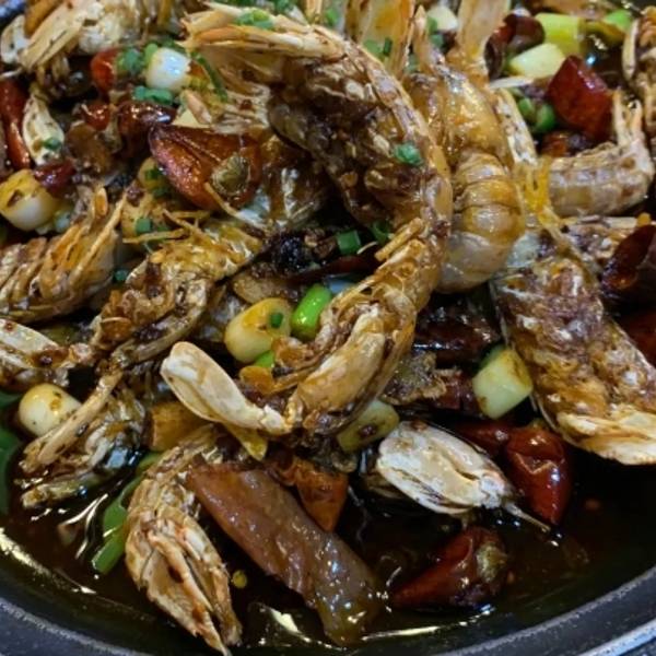 去成都旅游报了个九寨沟的团导游推荐去西安路吃饭第一个就推荐了这家所以啊回成都第二天立马就去吃了要的套餐有点的兔头我的天惊呆我了三个人花了不到300都没吃了辣是真的辣量也是真的大东北人都服气了去的很晚了人还是很多特别火香辣皮皮虾好好吃还有排骨小炒肉全部菜品都好评