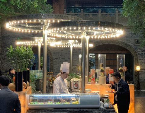 - 自助餐厅豪华版,环境幽雅,川西结合,现煮的海鲜最受食客的青睐