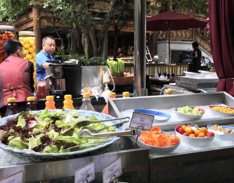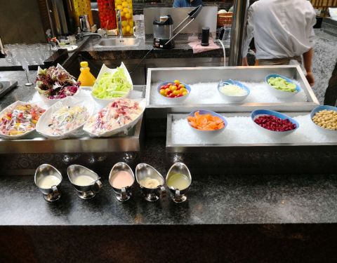 完全是老顾客了,位置还是那个位置,味道也是那个味道。直接进入正题吧。好像有进行调整,以前冰淇淋配有丰富的坚果等配料,现在也都没有了。而且好像自从搞了泰国美食节以后,凉菜里面的几款泰式沙拉就一直存在着呢,味道到也不错。 吃的是早午餐。以前的早午餐帝王蟹腿之类的海鲜是摆在外面自取的,现在改成了派送,但是可以不限量的要。波士顿大龙虾还是半只,感觉比以前好吃了,嘿嘿。 另外,印度档口,现在更偏向东南亚和中东。那个烤鸡肉卷也不错,自己搭配。烤的鱼串也是不错的。中式热菜和西式热菜还是中规中矩的,没有特别印象深刻。冒菜没有,鳝鱼,不高兴。。。。 黑麦面包和甜品也保持了水准,总的来说很不错的。 服务好,谢谢。