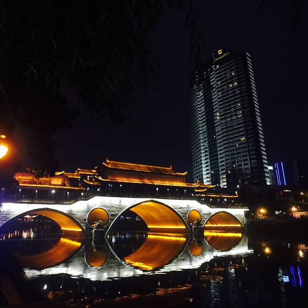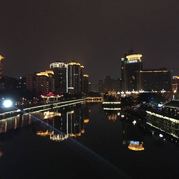 安顿好行李,趁着成都这么舒服的空气拍打我身,决定先在小区周边散散步,慢悠悠的走过几个街口,大约十几分钟便到了传说中的九眼桥酒吧街,据说这里晚上九点以后会特别热闹,一家一家连着的酒吧,各自施展魔法。...安顿好行李,趁着成都这么舒服的空气拍打我身,决定先在小区周边散散步,慢悠悠的走过几个街口,大约十几分钟便到了传说中的九眼桥酒吧街,据说这里晚上九点以后会特别热闹,一家一家连着的酒吧,各自施展魔法。可是到达九眼桥的时候,霓虹初上,酒吧里空空如也,每一家酒吧的服务员都在紧张的准备中,迎接夜晚的狂欢,而此时这条街安静如常,下班的人群和晚饭后遛弯儿的大爷大妈们穿梭于此,就像旁边静静流淌的府南河,来了去,去无踪,各自在各自的轨道上,互不打扰,各安其事。据说九眼桥酒吧街是这里最著名的一条酒吧街,大大小小不同主题不同装修风格的酒吧有上百家,沿河而建,霓虹闪耀、眼花缭乱,。我没有在此逗留,也没有等到它们暮色深沉之时的狂欢,是因我不胜酒力又牵肠挂肚热辣辣的成都火锅,于是匆匆离去。我说成都的夜是多情的,有时迷幻,让我想起了林忆莲的《夜太黑》,“霓虹里人影如鬼魅,这城市隐约有种堕落的美。”不知向左或向右;有时伤感,就像《白天不懂夜的黑》,“你永远不懂我伤悲……不懂月亮的盈缺。”有时它会随着音乐的节奏欢快舞动,有时它又会透着那么一股淡淡的柔情……一首成都,一杯酒,一条河,对酒当歌一场梦。