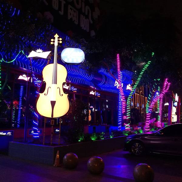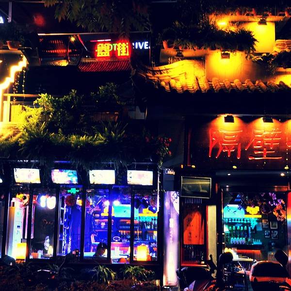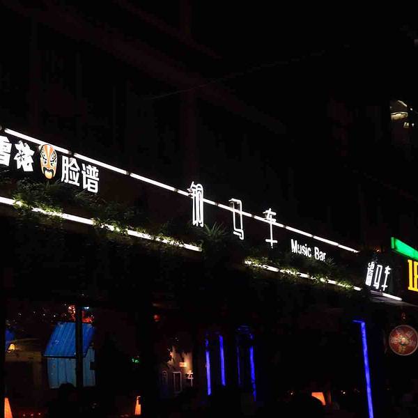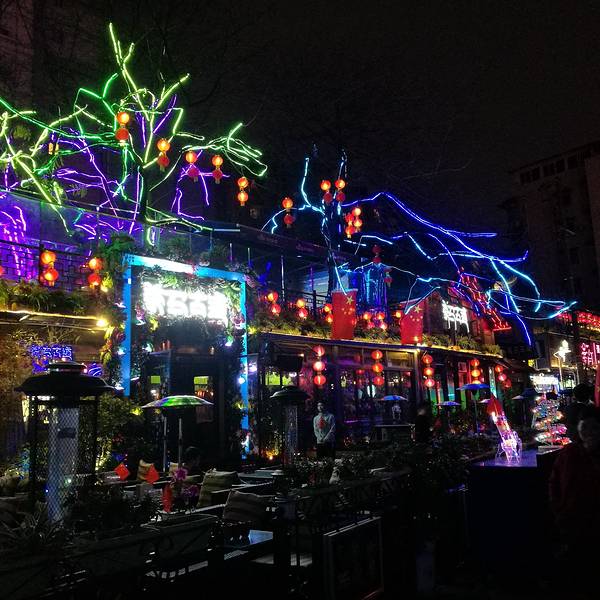 吃完火锅,夜幕降临,酒吧一条街已是灯火辉煌。
