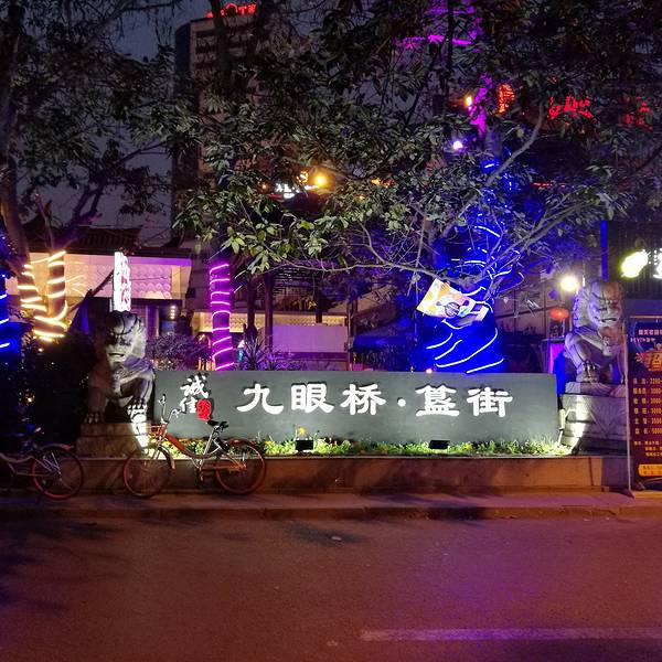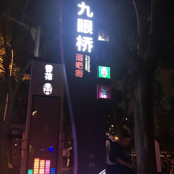 吃完后正好沿着九眼桥河边散步消消食。附近有卖这种彩色的气球,和九眼桥两岸的氛围倒是很契合。从九眼桥到安顺桥这一段就是著名的酒吧街啦。九眼桥沿岸的酒吧街灯光摇曳,浪漫的歌声萦绕在河岸江畔,处处都彰显...吃完后正好沿着九眼桥河边散步消消食。附近有卖这种彩色的气球,和九眼桥两岸的氛围倒是很契合。从九眼桥到安顺桥这一段就是著名的酒吧街啦。九眼桥沿岸的酒吧街灯光摇曳,浪漫的歌声萦绕在河岸江畔,处处都彰显着这座城市年轻的活力和激情,这边的氛围很适合年轻男女来玩~