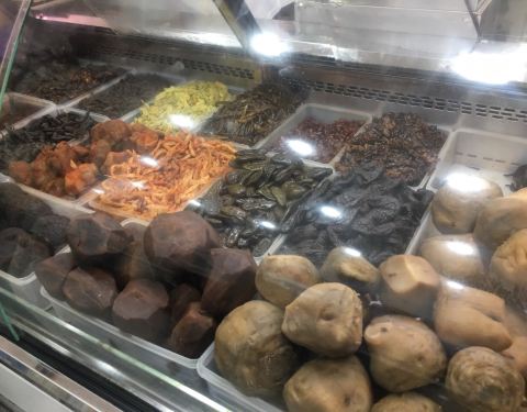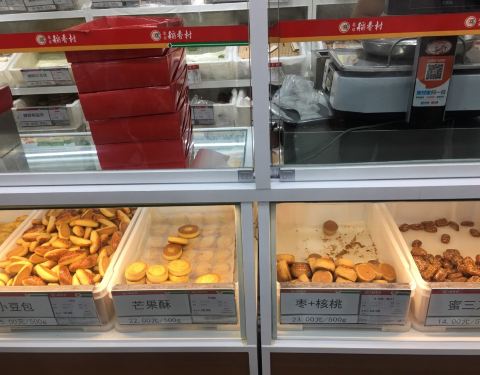 想买北京名产,请教老北京,强烈推荐这家稻香村,发现这家店的产品种类真多,无论腌渍菜、凉拌菜、现做点心,连应景的月饼礼盒都有,适合各种预算和等级的名产选购,还有现烤肉串可以买。