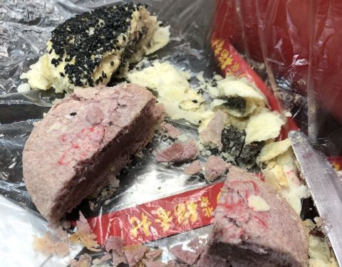 没想到在澳门办公室的茶水间随意一看,稻香村火红的大盒子就印入眼帘。看到了就得赶快解决了,哪儿还能等它过周末。久违的味道,老北京过年的串门儿的标志性礼物。最喜欢牛舌饼,甜咸椒盐综合口感,外皮酥的小美女一咬掉一桌子。甜味的各类甜馅儿同事说吃出了鲜花饼的味道。哈哈,差不多吧,都是甜中带丝清爽的口感,甜美的口口香,关键还是健康的甜的恰到好处。快过年了,吃到家乡的点心,心里美滋滋!