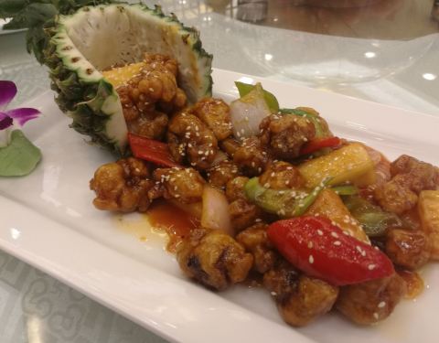 松涛山庄酒楼招牌上显示是松涛大酒楼,老牌粤菜店,位于南海区闹市路边,独体建筑,院子里面有偌大的停车场,停车绰绰有余,而且树荫遮蔽。酒楼场面大,楼上均是包间。点了一些家常菜,感觉服务员有意向高价海鲜上引导,有点不爽。样式不错,口味还行。点的毛血旺佐料充足,但毕竟广东人做川菜,味道出不来。其他的粤菜做的尚可。酒店适合做各类宴席,缺点是设施有些偏旧。