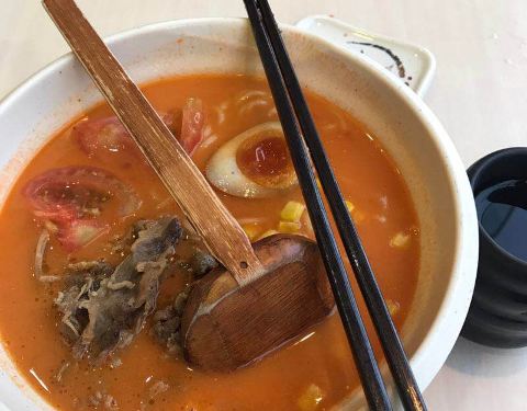 番茄牛肉拉面有点酸,不过肥牛好吃,那个经典的味千拉面味道还是依旧。