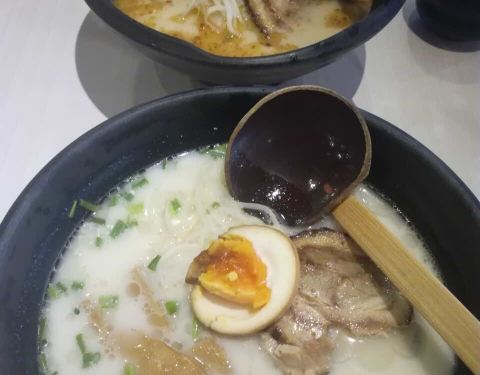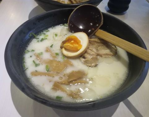 - 碗里配有有软肋骨,叉烧,糖心鸡蛋,海苔,环境挺好的,干净卫生,空间大,上菜速度快,点单五分钟面就来了