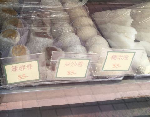 普光斋特别注明为“蔡澜之选”、“蔡澜常去食肆150间之一”。这里有怀旧卤味、斋肠粉,外卖午餐45元。除了餐厅,门口还有柜台出售小点,买了一个5元的豆沙卷,糯米糍和豆沙均细腻柔软。
