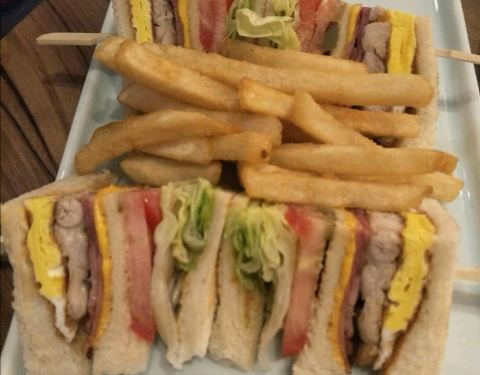 玩累了一看这个可以吃饭就进来了,食八方味道是不错,是个有简餐的茶餐厅。这里的汉堡做的很精致,肉馅到蔬菜,芝士到面包,用料都很新鲜,还不错。