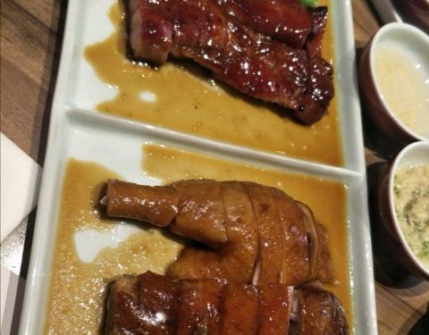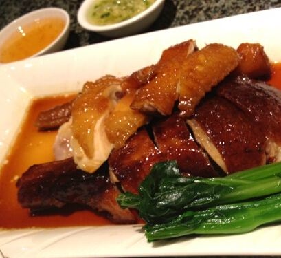 在娱乐城里面的餐厅,要求不能太高了,不过算是吃的比较好的,尤其是烧腊做的很不错,豉油鸡很好吃,叉烧肥瘦相间刚刚好,价格都是100左右一份。