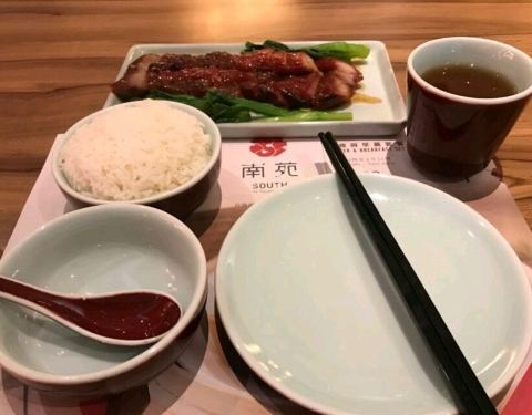 - ...有,南北菜通吃,我吃的是南苑,比较喜欢潮州和广东菜,叉烧饭不错,一排叉烧很厚的哦,还有汉堡供应