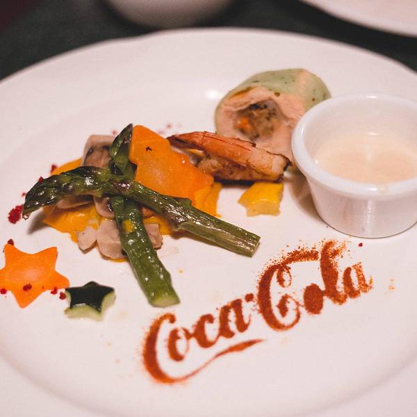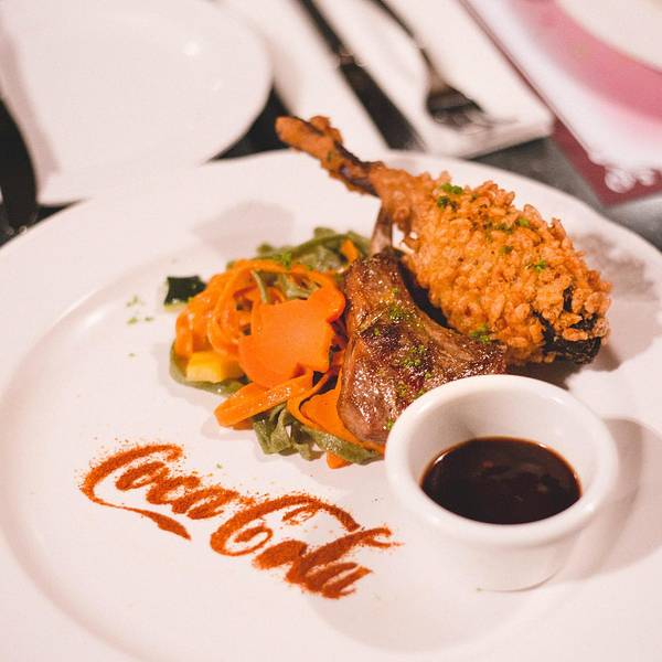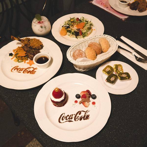 精致可口的Coca-Cola® 圣诞节套餐采用了烟火鸡及金门火腿配芬达®小点子芒果沙律作为前菜,食物被用心地做成圣诞元素,漂亮极了。(香煎凤尾虾及鲑鱼带子青口卷,炒杂菜,南瓜薯仔蓉配雪碧®柠檬香茅忌廉汁)(香煎羊...