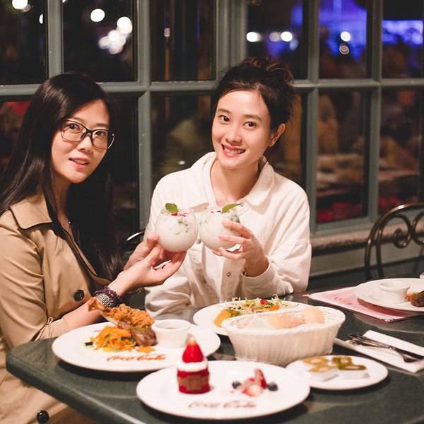 精致可口的Coca-Cola® 圣诞节套餐采用了烟火鸡及金门火腿配芬达®小点子芒果沙律作为前菜,食物被用心地做成圣诞元素,漂亮极了。(香煎凤尾虾及鲑鱼带子青口卷,炒杂菜,南瓜薯仔蓉配雪碧®柠檬香茅忌廉汁)(香煎羊...精致可口的Coca-Cola® 圣诞节套餐采用了烟火鸡及金门火腿配芬达®小点子芒果沙律作为前菜,食物被用心地做成圣诞元素,漂亮极了。(香煎凤尾虾及鲑鱼带子青口卷,炒杂菜,南瓜薯仔蓉配雪碧®柠檬香茅忌廉汁)(香煎羊架及乐脆猪串骨,炒杂菜,菠菜及西红柿阔面配可口可乐 ®特制烧汁)主菜可以二选一香煎羊架还是香煎凤尾虾,味道都很可口,还有蔬菜、主食、饮料等搭配,既有颜值又有实力,赏心悦目。爱极了黑森林慕斯蛋糕配杂莓红桑子汁这道甜品,精致小巧的圣诞老人造型,这样的美食也只有在迪士尼这么充满想象力的地方可以被制作出来。这一餐是视觉与味蕾双重享受,堪称满分的仪式感平添了许多幸福感。在香港迪士尼,关于“冰雪”特色的美食还有很多,比如市集饼店有“小白杯子蛋糕”,激萌十足,大家自己多多挖掘哦~