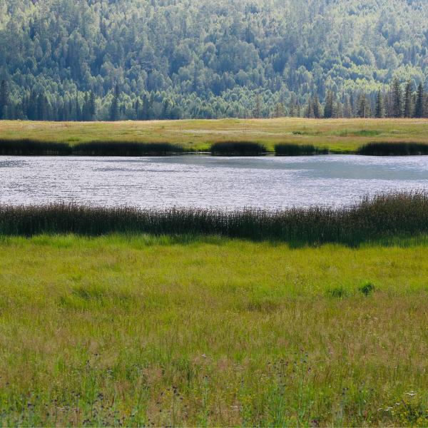 鸭泽湖距离喀纳斯图瓦村约1公里,西临喀纳斯河,四周环绕着茂密的森林,湖体呈长形蝶状,沿洼地南端...鸭泽湖距离喀纳斯图瓦村约1公里,西临喀纳斯河,四周环绕着茂密的森林,湖体呈长形蝶状,沿洼地南端形成一个南北走向的宽浅湖泊,湖周开阔平缓,湖泊似镜,夏天有野鸭、大雁在湖区栖息。我们去的时候没见到鸭子。