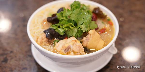 招牌菜鸡汤汤底有清醇的酒香和鸡的鲜味~热喝起来很暖胃,汤里还有不少配料,除了嫩滑的鸡肉还有配搭着香菜,红枣,冬瓜,杞子,云耳,一碗分量十足!吃上一碗有着养生的感觉…除了鸡汤米还有川芎鱼头米,以鱼头及...招牌菜鸡汤汤底有清醇的酒香和鸡的鲜味~热喝起来很暖胃,汤里还有不少配料,除了嫩滑的鸡肉还有配搭着香菜,红枣,冬瓜,杞子,云耳,一碗分量十足!吃上一碗有着养生的感觉…除了鸡汤米还有川芎鱼头米,以鱼头及多种药材熬成的汤底,川芎可活血行气,祛风止痛