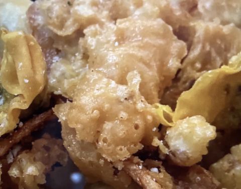 荣晖咖啡最出名的就是牛肉片仔面了,汤底是牛肉汤,真的货真价实,炸云吞个头小,所以味道一般般,里面的虾仁都是小虾,吃不出味道来。