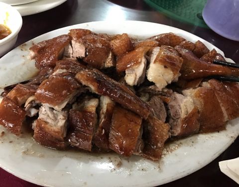 - 这次试一下新鲜出炉的烧鹅,果然皮够脆肉汁够多,味道不是一般的好,比得上深井烧鹅