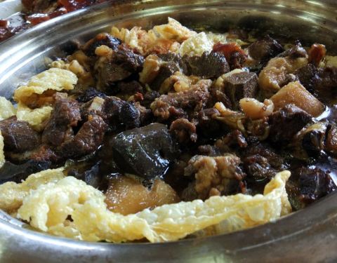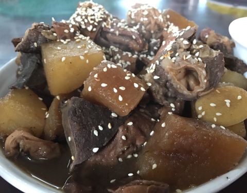 感觉比牛杂更加好吃! 烧鹅皮超级香脆,不过太肥了,底下一层肥油,太腻了。 萝卜煮驴杂好美味
