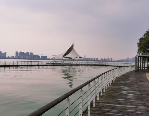 这里的景色太好了,我们到的早,所以挑了最佳的望湖位置。菜品也非常好吃,一个冬雪寻梅小排骨是热菜,菜美味美。一道淮扬干丝,很见功底。酸菜鱼片薄薄的,泡姜是亮点。果汁明虾球味道很好,受到了爸妈的喜爱。...
