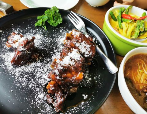 菜品都十分精致,摆盘尤为漂亮,满满的艺术感。牛仔骨香嫩多汁,点心也是很不错!服务也是相当到位