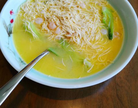 入住酒店后,儿子不舒服就酒店吃点东西吧,懒得跑出来了…… 点了三个菜三碗面,和一份冰糖雪梨 味道不错吧,量也蛮大的 价格还可以能接受