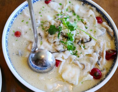 这里的景色太好了,我们到的早,所以挑了最佳的望湖位置。菜品也非常好吃,一个冬雪寻梅小排骨是热菜,菜美味美。一道淮扬干丝,很见功底。酸菜鱼片薄薄的,泡姜是亮点。果汁明虾球味道很好,受到了爸妈的喜爱。两个小点心是桂花南塘糖水鸡头米和杨枝甘露,小盖盅盛来很有感觉,鸡头米软糯,强过后面在东山吃的味道。米饭稍贵哦,哈哈哈。是唯一吃过有服务费的白米饭