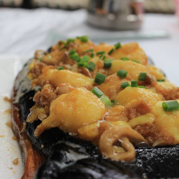 - 云南束河古镇“粗茶淡饭”餐馆。铁板 日本 豆腐,这道菜是伯爵一个员工介绍给我们的