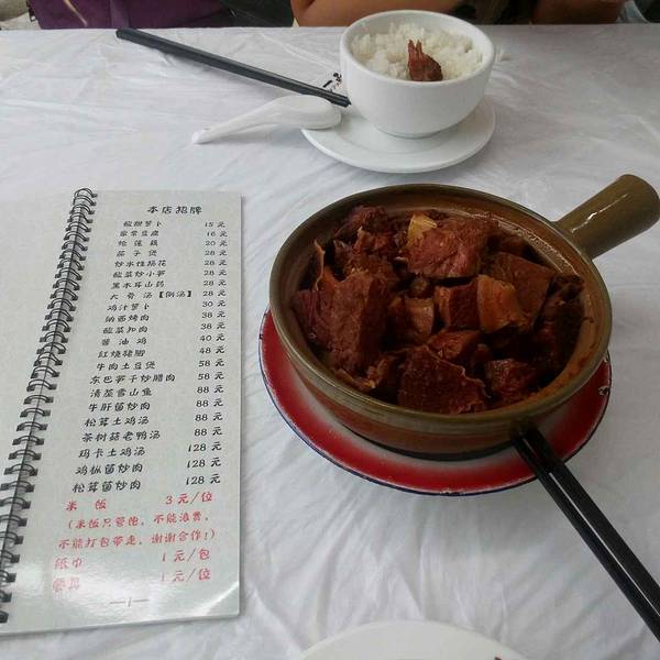 很多人推荐这里,于是来体验一下。中午十一点多过来,人还不是很多。点了招牌土豆牛肉煲,牛肉炖的烂烂的,特别入味儿,土豆不敢恭维,和我们薯都的土豆完全没法比。茄子煲有些腻,几乎没怎么吃。腊肉炒苦瓜中规...很多人推荐这里,于是来体验一下。中午十一点多过来,人还不是很多。点了招牌土豆牛肉煲,牛肉炖的烂烂的,特别入味儿,土豆不敢恭维,和我们薯都的土豆完全没法比。茄子煲有些腻,几乎没怎么吃。腊肉炒苦瓜中规中矩,量倒是很大。米饭相对于这里的其它餐厅好吃了许多。