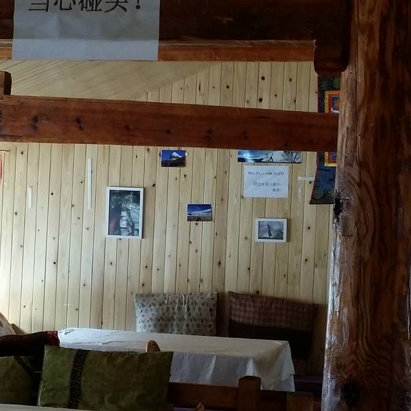 - 客栈老板推荐的这家餐馆,口味不错,可以尝尝,点了三个菜两杯酒。纳西烤肉。内部环境