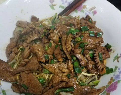 复兴路上的小狗面店。年前营业到最后一天。老板娘负责点单和配菜。两个老师傅在那霍霍。来的都是老客甚至有附近菜场买了河虾带过来要加在面里的。哇是自家面馆没错了~ 一碗「腰花拌川」一碗「大肠拌川」。下油下料爆炒加面出锅一气呵成。 如果说之前吃过的茄汁拌川可以用酸甜油润形容那这家的拌川就叫作干香。干干的细面一定要配上一碗汤。是比方老大的黑鱼汤简单许多的咸菜汤。也许是片儿川汤吧听起来高端些。腰花和大肠都不是特别出彩。小块量少。缺少大快朵颐的感觉。腰花和方老大比不只薄了一点点。吃过就知道。更偏家楼下的面店的味道和感觉吧。环境也是。