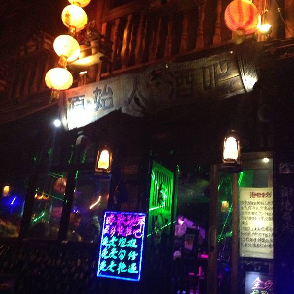 江边很多酒吧有名,百度,水木,守望者,还是决定找到了最火的原始人,标志性的路标牌,“世界真小,在原始人酒吧门口,我们又碰到了那拨广东自驾驴,他们在风情客舍等到了房间。大家拼桌坐下,雷鬼点了一瓶占边...