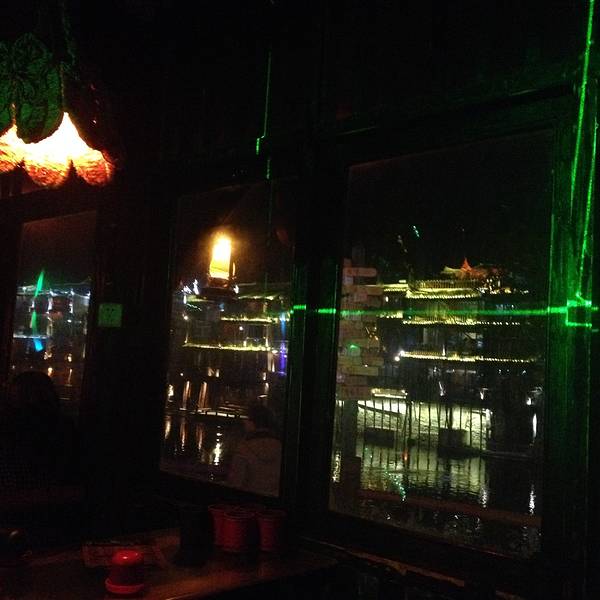 江边很多酒吧有名,百度,水木,守望者,还是决定找到了最火的原始人,标志性的路标牌,“世界真小,在原始人酒吧门口,我们又碰到了那拨广东自驾驴,他们在风情客舍等到了房间。大家拼桌坐下,雷鬼点了一瓶占边,挑衅的给我倒了一大杯。我一饮而尽,同样挑衅的瞪了她两眼。” 一个人,角落里喝着啤酒吃着爆米花,总、总是有些落寞,后来换到视角更好的地方,和两个哥们儿拼桌,和我说了几句话,听着太费劲,我也实在懒得回答。 从前喝过调过的鸡尾酒,终究想试一试哥顿金酒,那无色透明吧、经过多重蒸馏之酒精配以杜松子和多种香草的金酒,感受下那入口有些甜,象水果的清香,咽下去之后,回味很涩很苦的感觉。