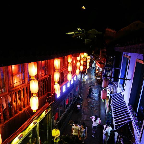 大峡谷不用一天,半天就能全部游览完,回程回到凤凰,休息两个小时,四点老地方集合(老地方是我们湘西小分队定的集合点,哈哈,其实就是原始人酒吧门口) 下半天,沱江泛舟 老地方等待驴友集合,偶遇另外一位驴...