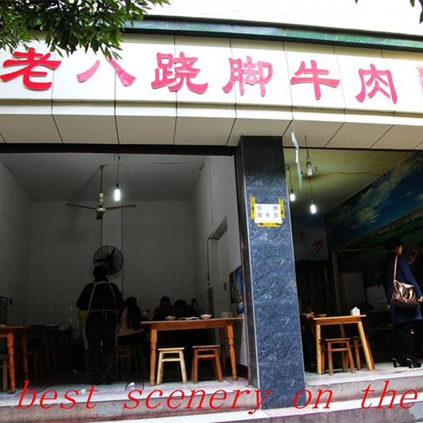 买了几大包特产,月影摇曳带着我去吃当地最著名的跷脚牛肉。
