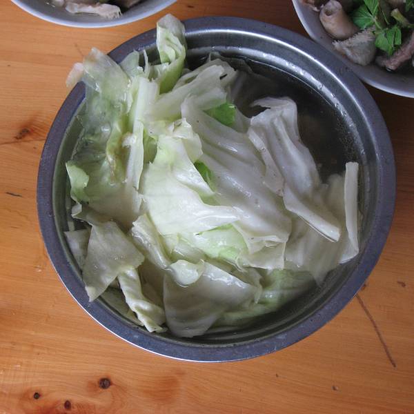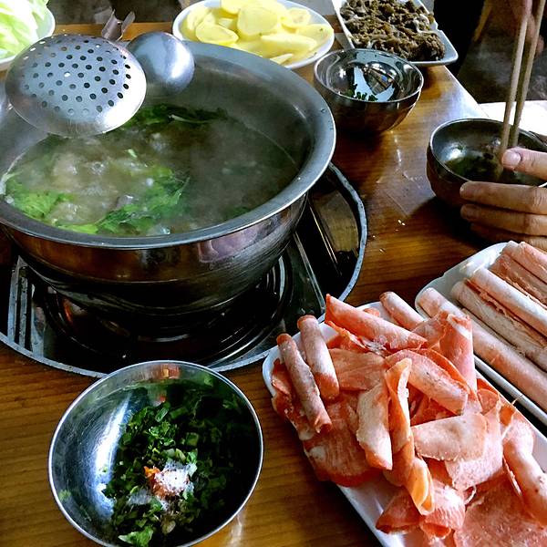 端上桌来,蘸调料食之,口感清爽脆利,伴着肉汤的鲜美,味道好极了。我们心满意足,满载而归